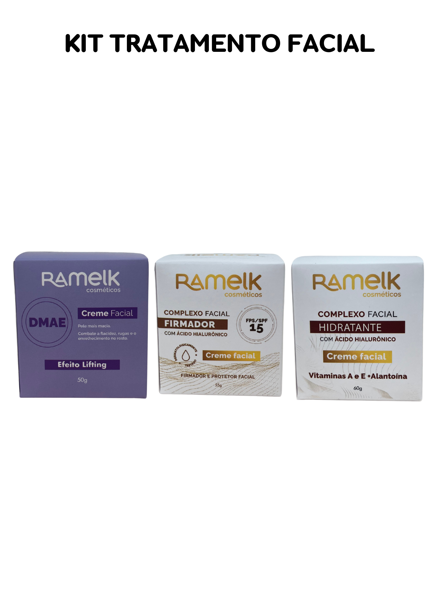 📦 INCLUI: 1 Complexo Facial Hidratante com Ácido Hialurônico, Vitamina A e E + Alantoína + 1 Creme Facial com DMAE + 1 Creme Hidratante Facial Firmador com Facial com Ácido Hialurônico e Protetor Solar FPS/SPF 15